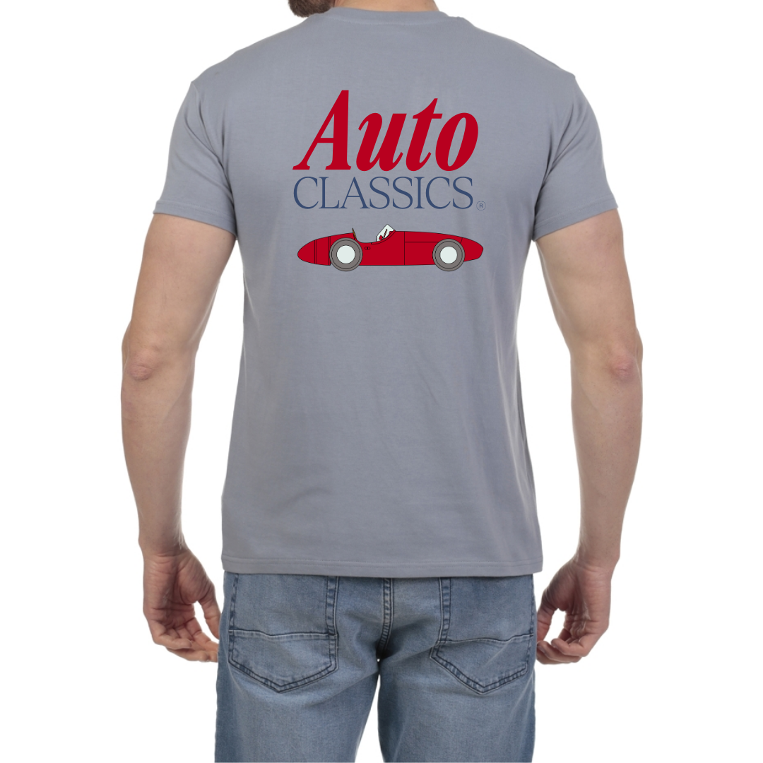 Camiseta sport estilo raglán con pequeño icono coche vintage de la marca Auto Classics en la parte delantera y logo en grande en la parte trasera. Talla única. Ideal para el día a día, para eventos de clásicos o para combinar con denim y sneakers.